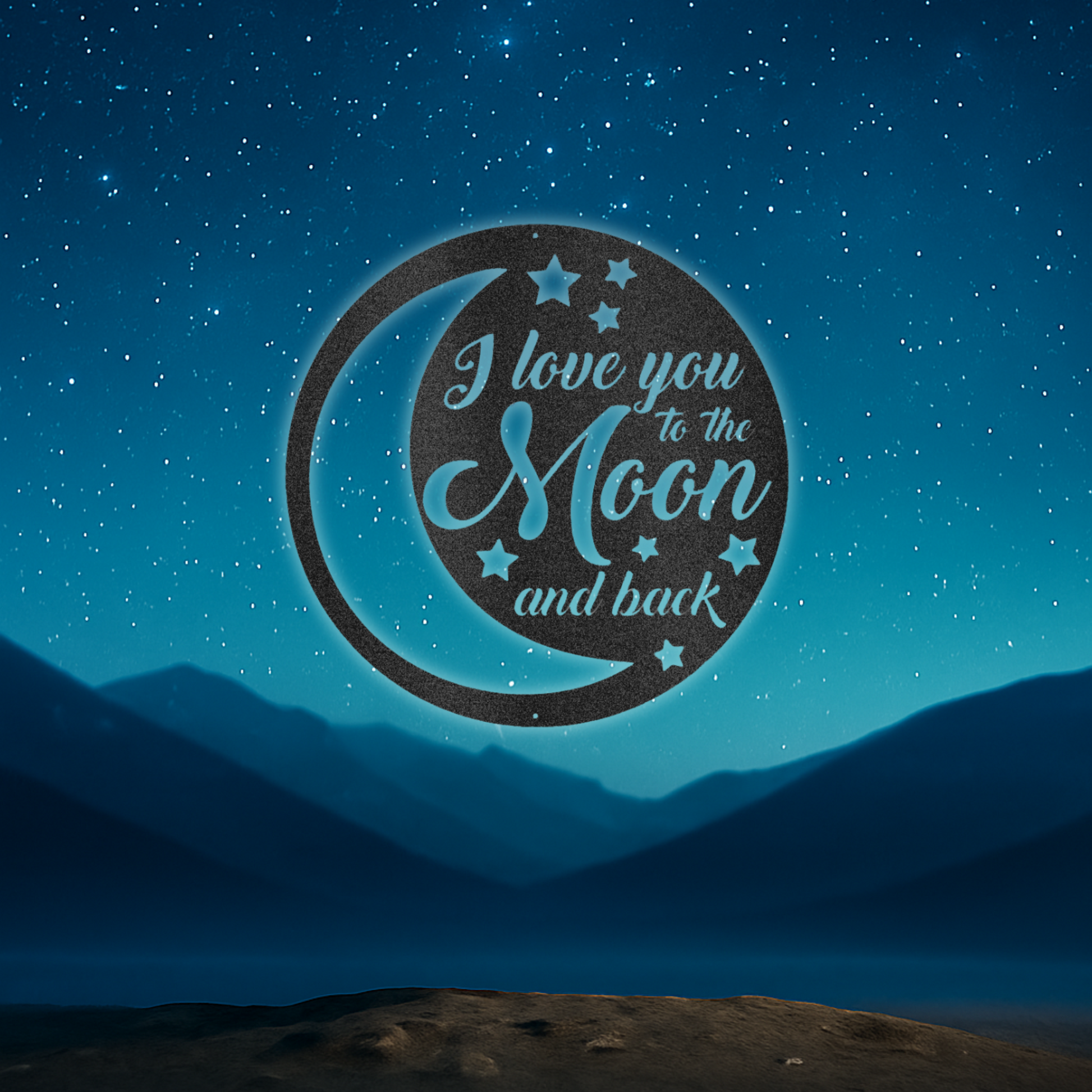 Say it without saying a word. This “I Love You to the Moon and Back” metal sign captures a timeless expression of love in a celestial-inspired design — part of our Stargazer Series. Whether gifted to a partner, child, or friend, this piece adds heartfelt warmth to any wall, porch, or patio.